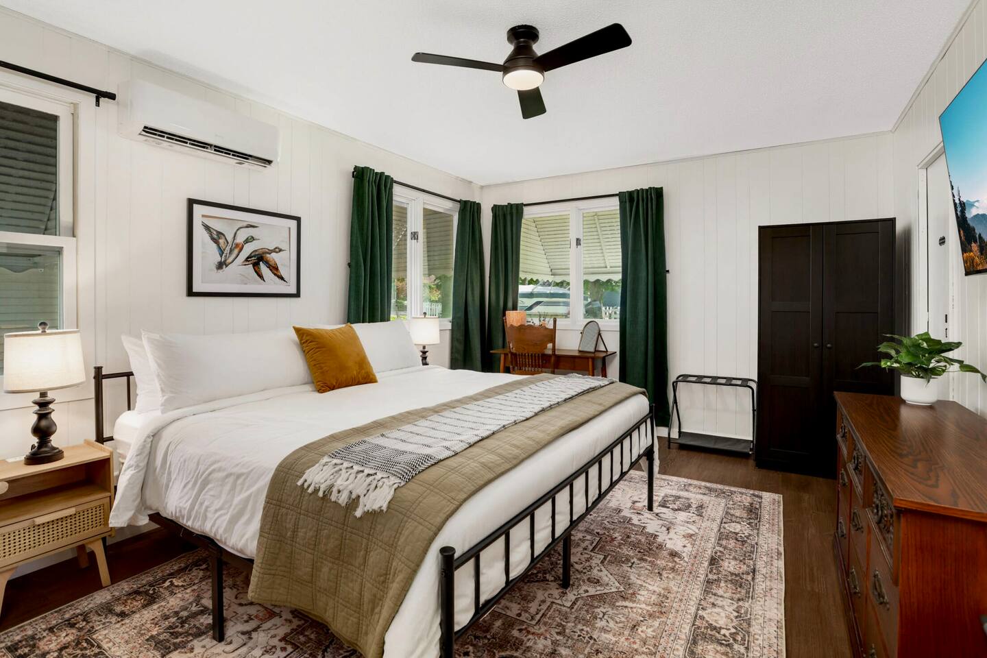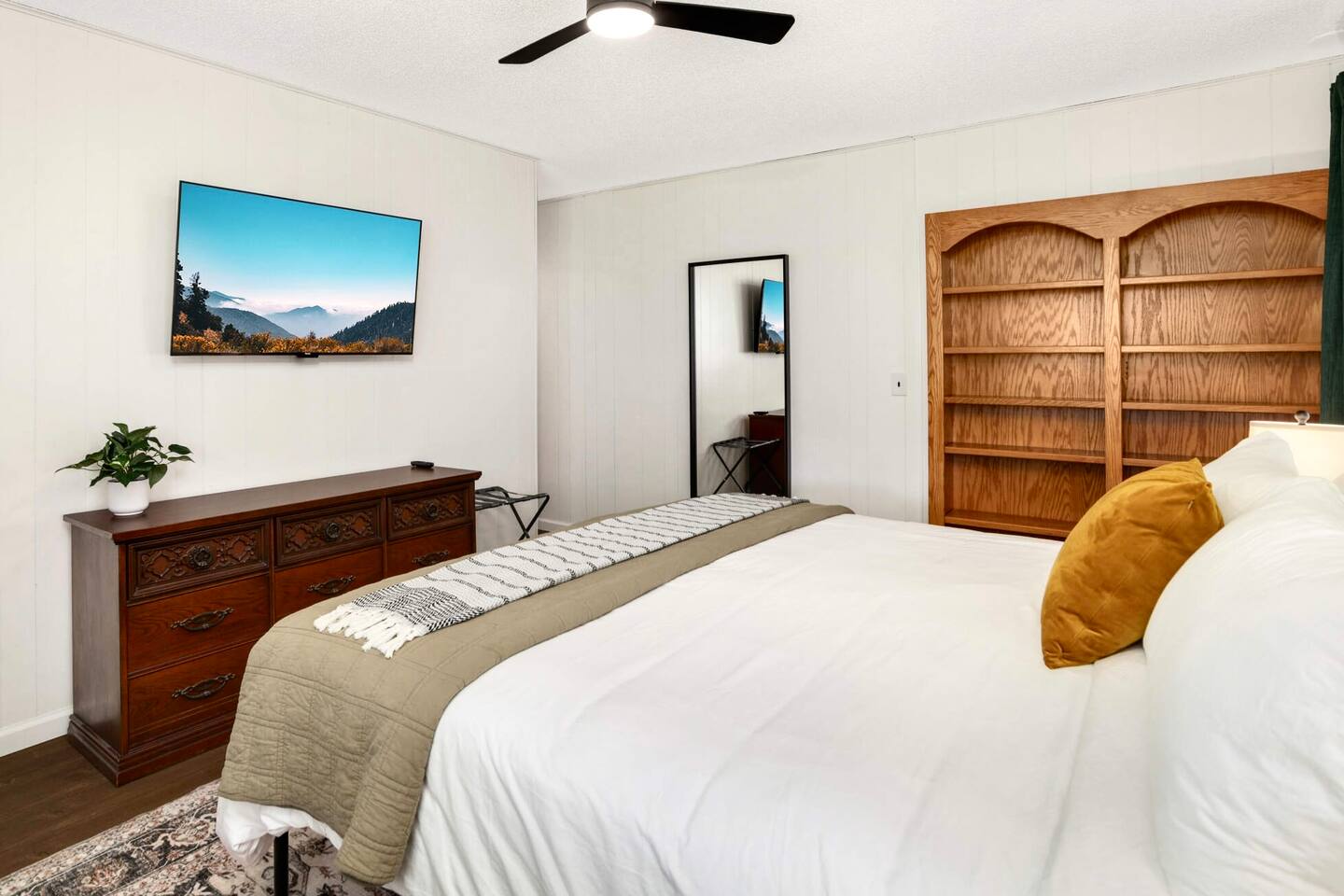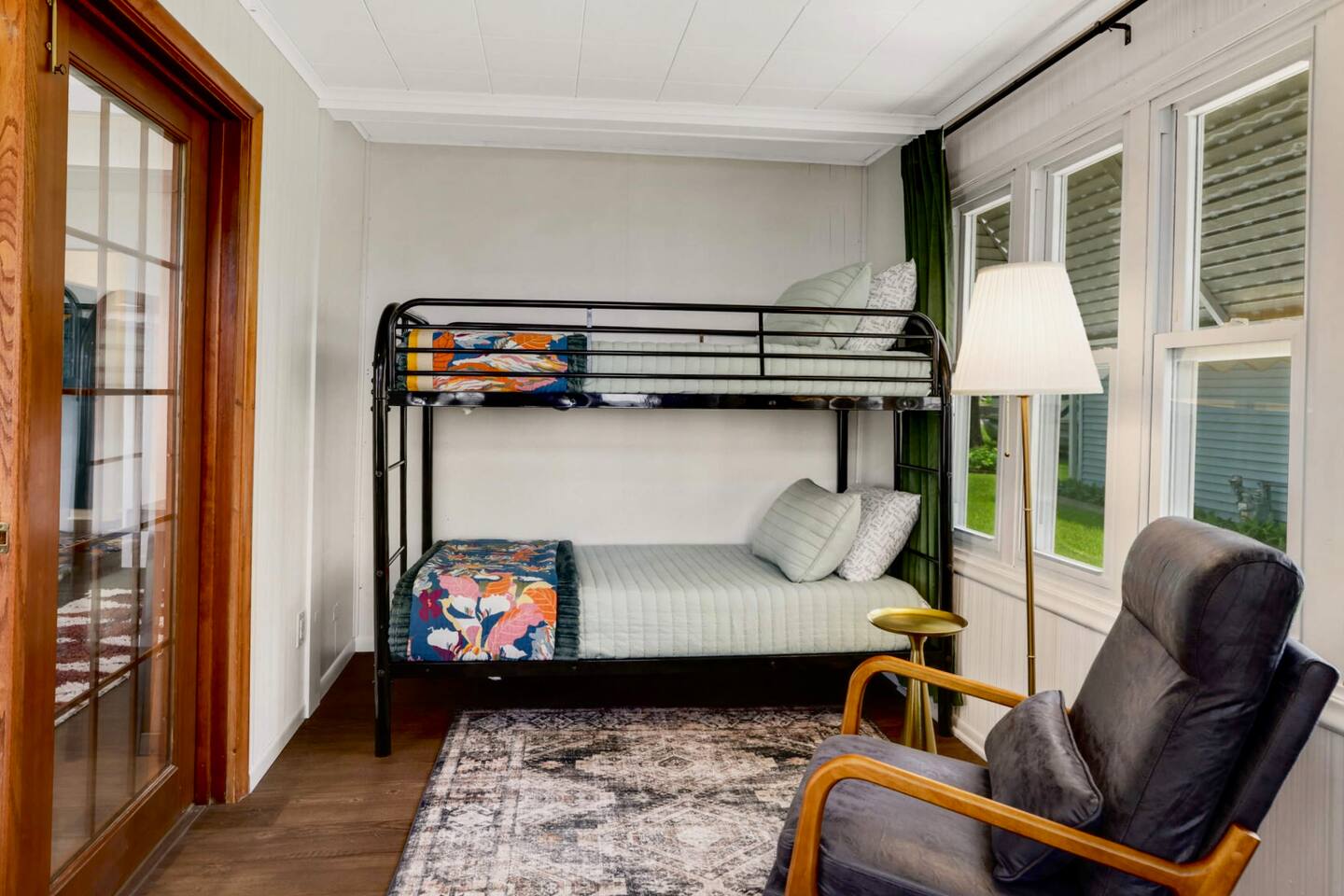 🛋️Cozy up by the fire on the spacious sectional in the living room, featuring a bay window with a panoramic lake view, a warm fireplace, and a 4K Roku TV. 🌅 Enjoy more panoramic views from the four-season sunroom, complete with a Jotul gas fireplace and record player. 🌺 Fresh décor, new flooring and bathrooms. 😴 Rest easy in brand-new beds with plush bedding. 🛏️ Bedroom 1: King bed, 4K Roku TV, blackout drapes, ceiling fan. 🛏️ Bedroom 2: Queen bed, 4K Roku TV, blackout drapes, ceiling fan. 🛏️ Sleeping area/ Bunk room twin over twin: located in a common area with limited privacy. Dock Use: 🎣 Our 50-foot private dock is available for guest use from May - October (check with host for exact dates, weather dependent ) It's great for fishing and relaxing. Water depth is about 2 feet midway and 3 feet at the end. See “other details” for more notes on dock and boat use. 🔥 Fire pit, gas grill, cozy outdoor seating and dining areas are yours to enjoy. 🎆 Incredible Fourth of July and New Year’s Eve Fireworks visible from dock!