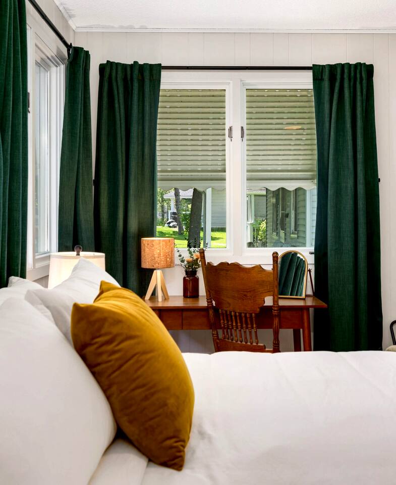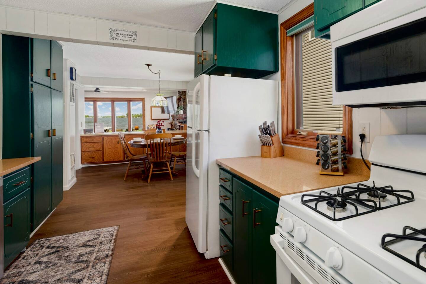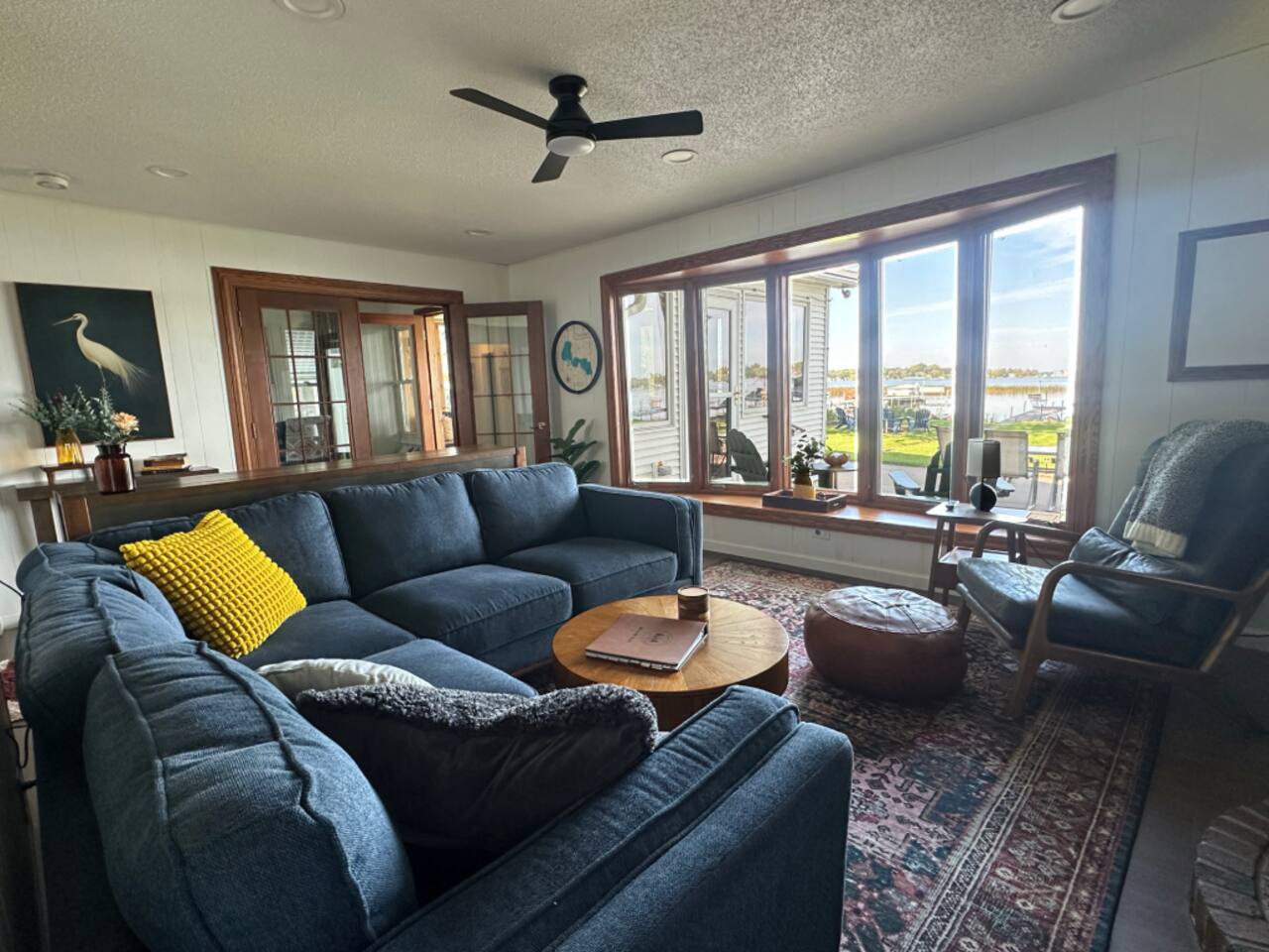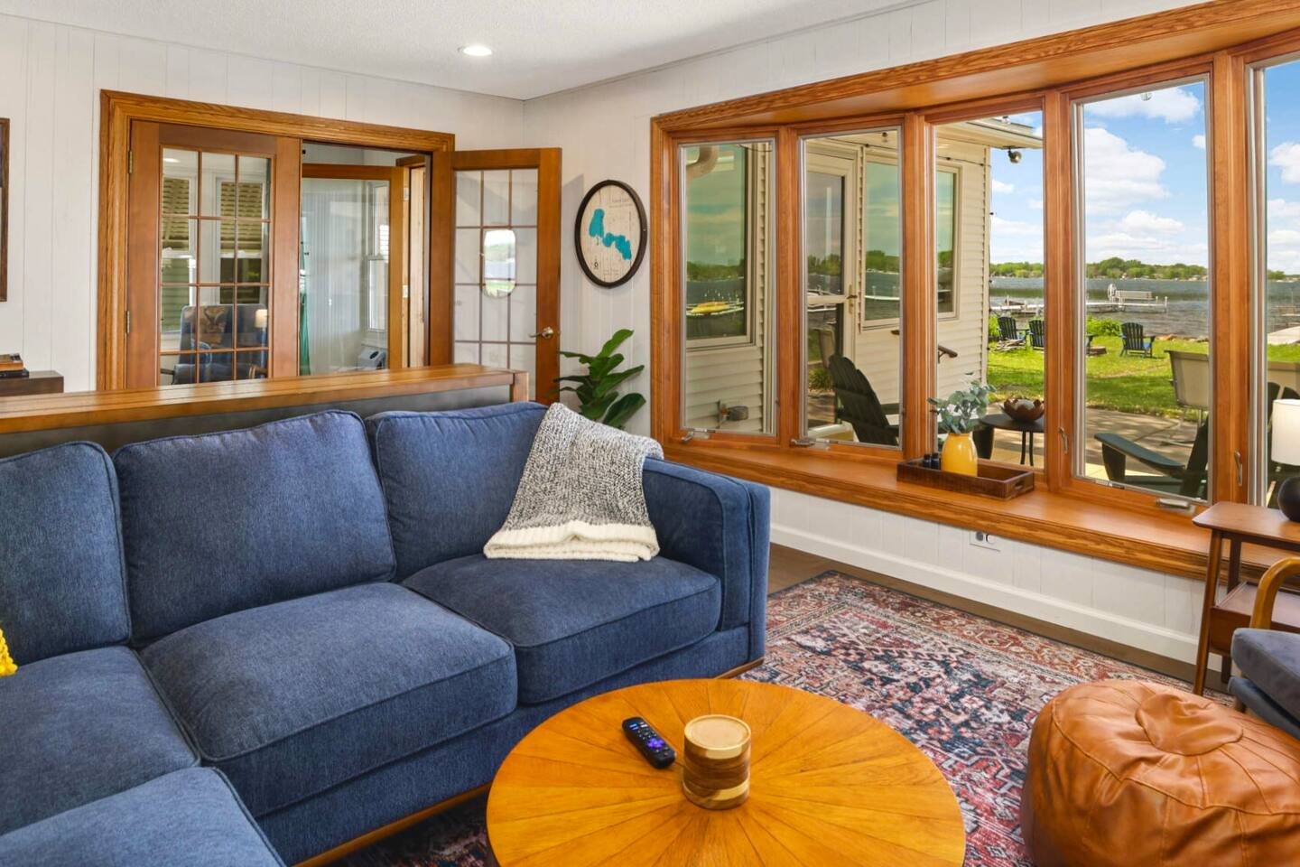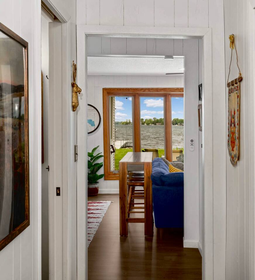 The property runs on well water, and we’ve installed a home water softener along with a charcoal filtration. We regularly test the water to ensure it meets safety standards. There may be a slight smell or color due to minerals, we do supply a few gallons of drinking water under the coffee bar as well as drinking water filter in the kitchen. This property is NOT SUITABLE FOR SMALL CHILDREN: Please note that the property is not fenced and has direct access to open water and the dock. Extra caution is advised. Use of lake and dock at your own risk. Sorry, but absolutely no pets. If a pet is found to be on the property it will be an immediate cancellation of booking. For heating and cooling, our mini-split system is set between 69-72°F to keep the home comfortable. Guests will not have direct access to adjust the thermostat, but if you need any temperature adjustments, just let us know, and we’ll be happy to assist. Bunk Room (Twin over Twin, Minimal Privacy) The room serves as a pass-through between the living room and the four-season room. Be sure to check the photos of the bunk area to ensure it’s a good fit for your group before booking! We DO NOT supply life jackets, so please bring some if you plan on swimming especially with children. Use of dock and lake are at your own risk. Dock Use & Boat Access: Our 50-foot private dock is available for guest use! Water depth is about 2 feet midway and 3 feet at the end, which is typically suitable for smaller boats like fishing boats or pontoons. Please note: all boats must be pre-authorized prior to using the dock to ensure safe and proper access. The dock is typically installed mid-May and removed in early October (weather dependent). During this period guests can enjoy swimming, fishing, and boating directly from the dock. Boat Rental: If you would like to rent a pontoon boat we recommend reaching out to Your Boat Club Dot Com on Forest Lake. Let us know if you do, we will give you a coupon code if there’s one avail. Guests should approach slowly and use caution when docking, as the water is very shallow.